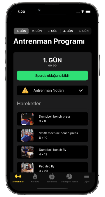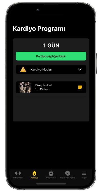 Tamamen sana özel olarak hazırladığımız Antrenman, Beslenme, Kardiyo ve Supplement Programın artık cebinde