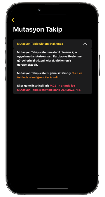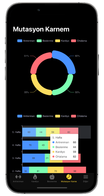 Seni sürekli takip ediyoruz. Anlık ve haftalık olarak programına ne kadar uyduğunu takip et, Mutasyon'u geciktirme!