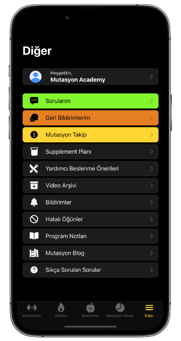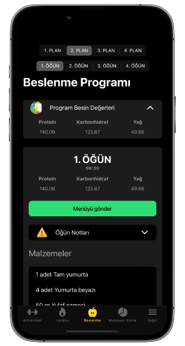 Tamamen sana özel olarak hazırladığımız Antrenman, Beslenme, Kardiyo ve Supplement Programın artık cebinde